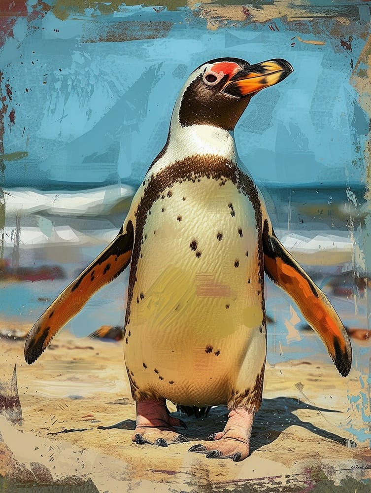 Galapagos Penguin Deception Island Colour Block Painting 2 -