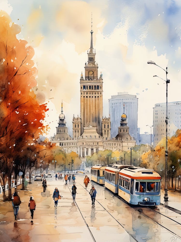 Warsaw Poland In Autumn Fall, Watercolour 3 -