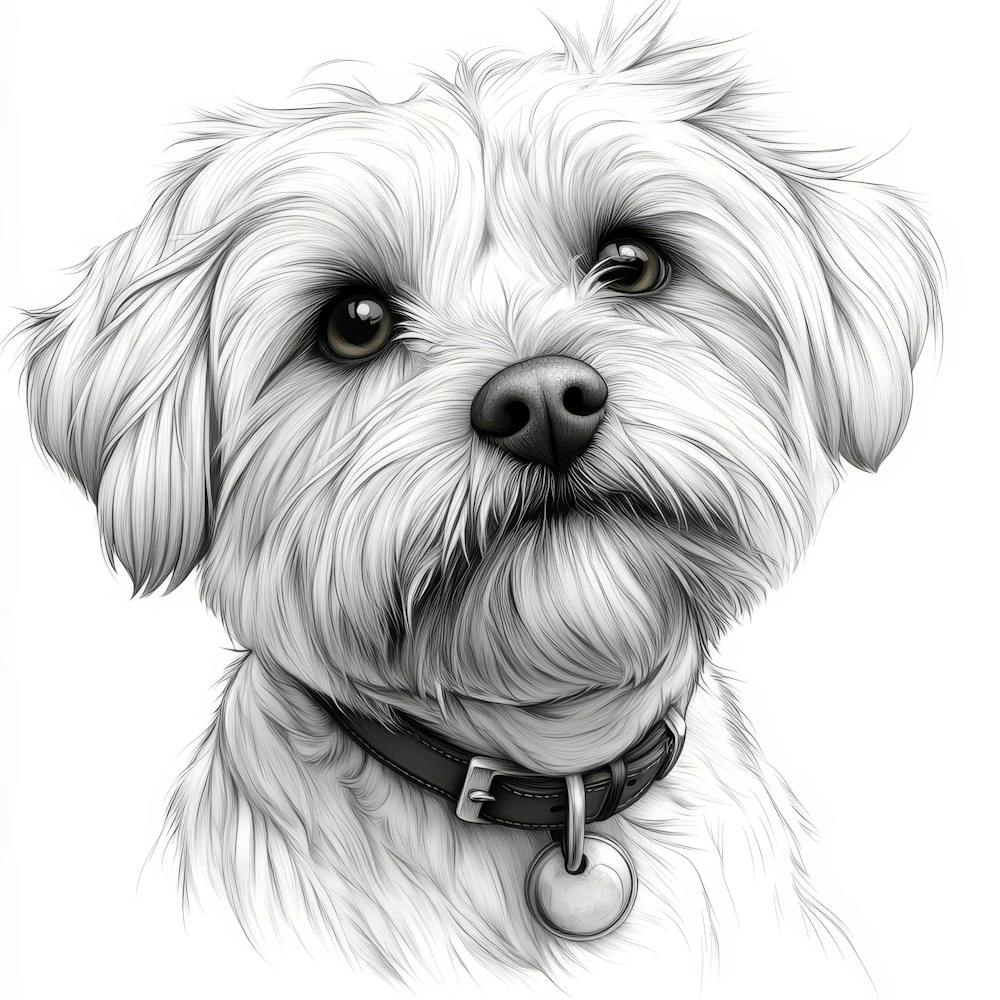 Bichon Frise Dog Line Drawing Sketch 4 -