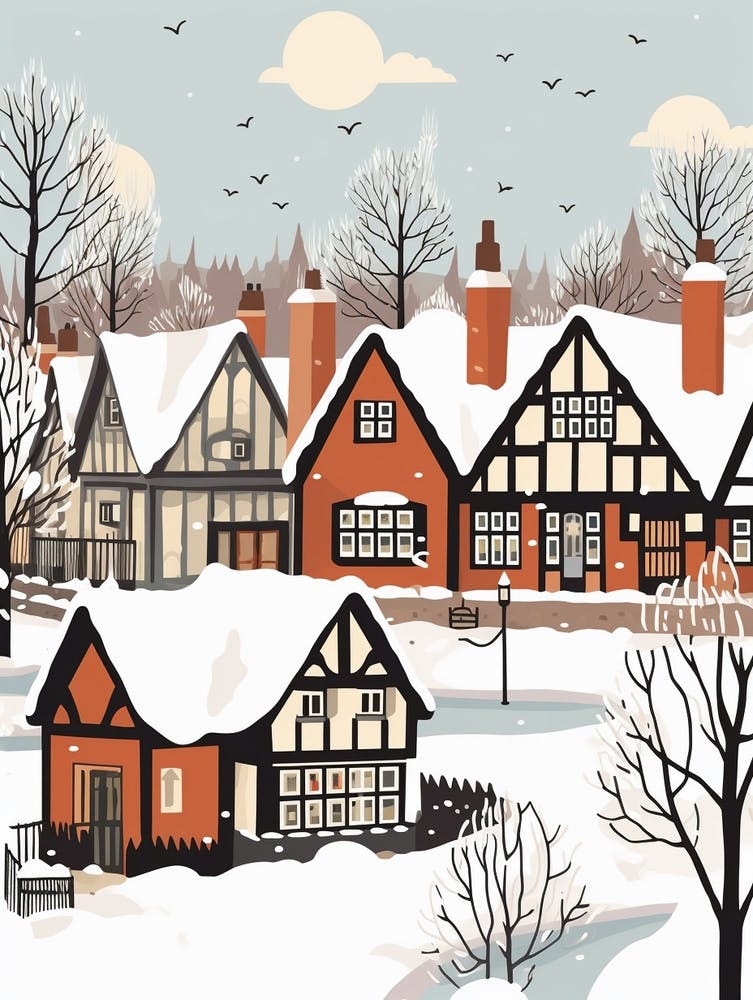 Retro Winter Illustration Stratford Upon Avon United Kingdom 2 -