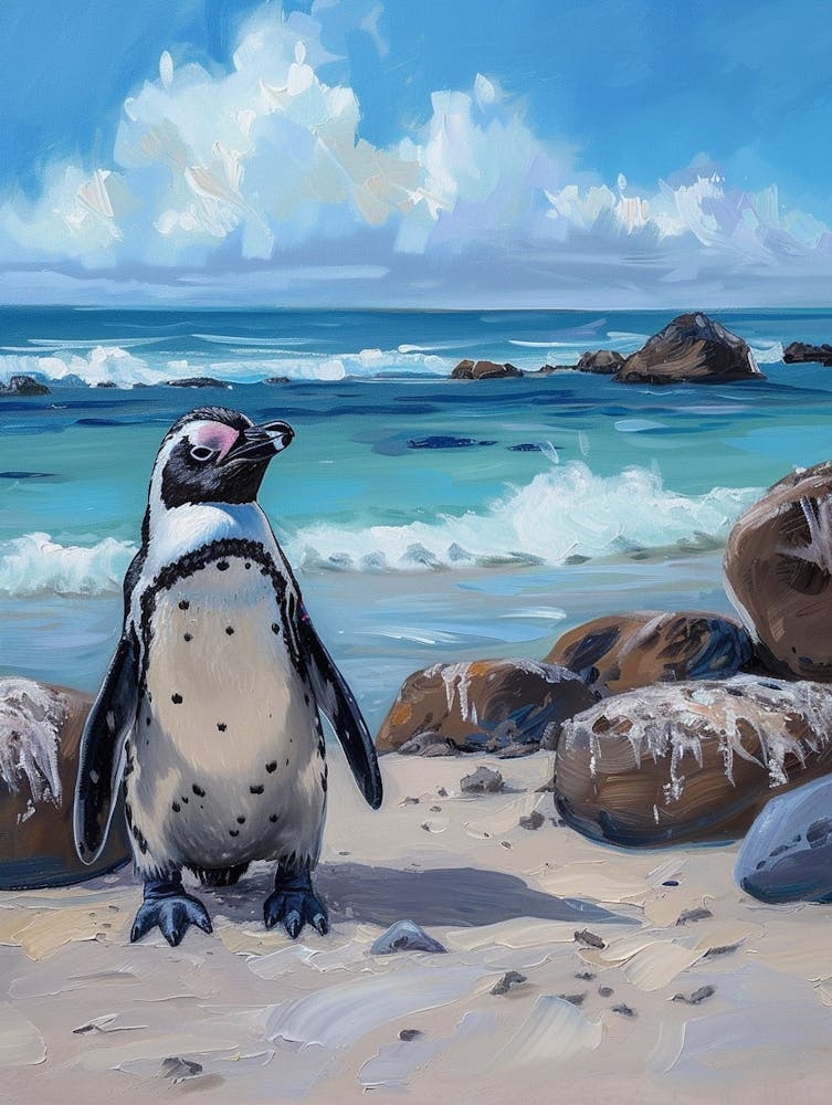 Adlie Penguin Boulders Beach Simons Town Oil Painting 2 -