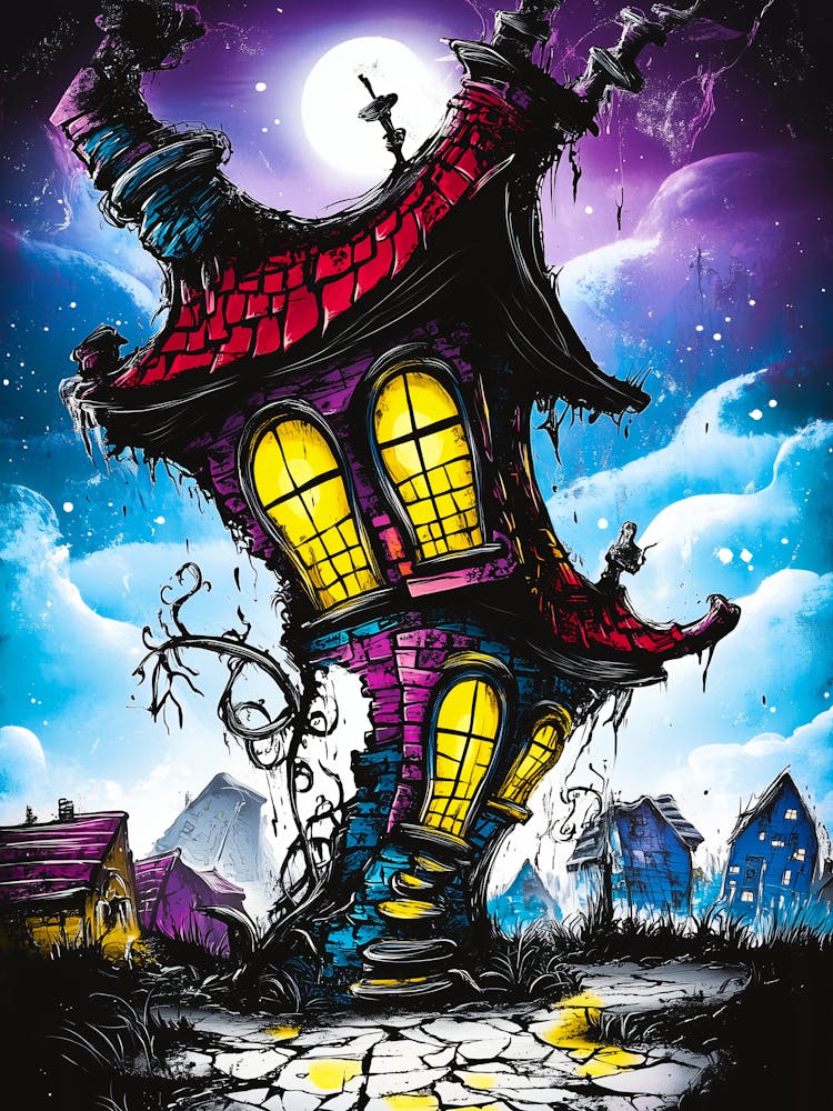 House On Stilts, vibrant colorful neo-expressionism inspired. -
