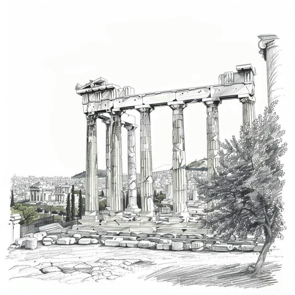 A Temple Of Olympian Zeus In Athens Hand Drawn S 1720009068 3 -