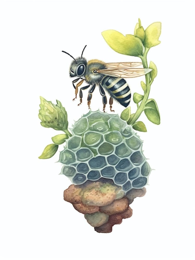 Blue Eyed Sweat Bee Beehive Watercolour Illustration 3 -
