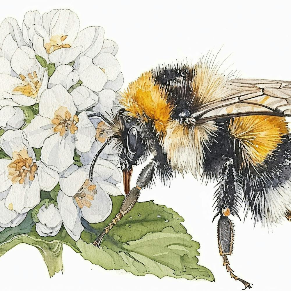 Bumble Bee Mimic Fly Bee Beehive Watercolour Illustration 1 -