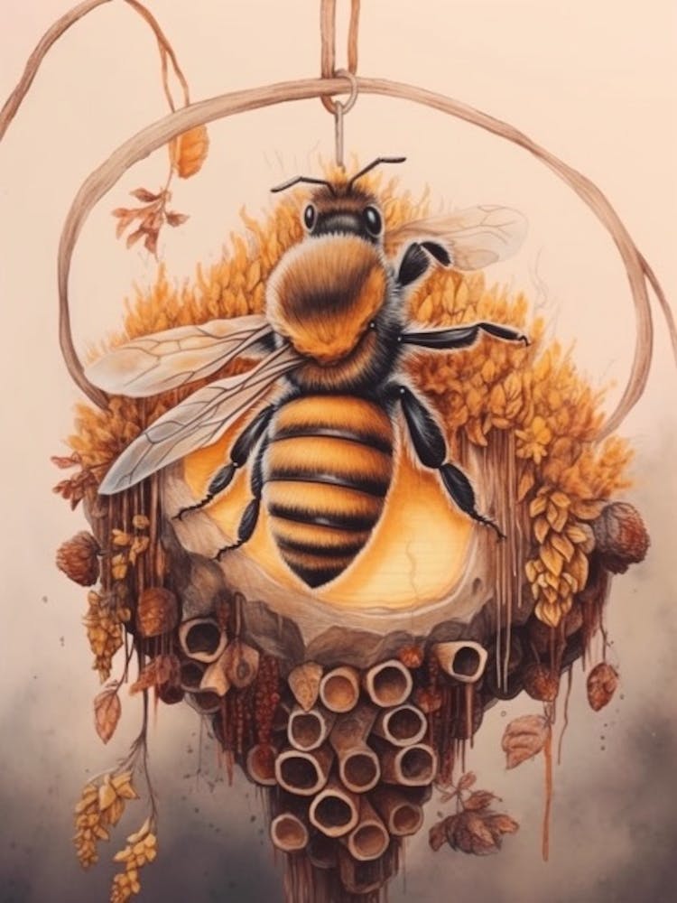 Brown Banded Carder Bee Beehive Watercolour Illustration 4 -
