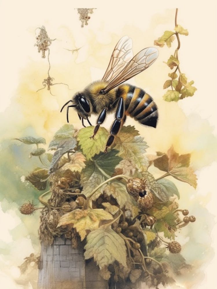 Ivy Bee Beehive Watercolour Illustration 4 -