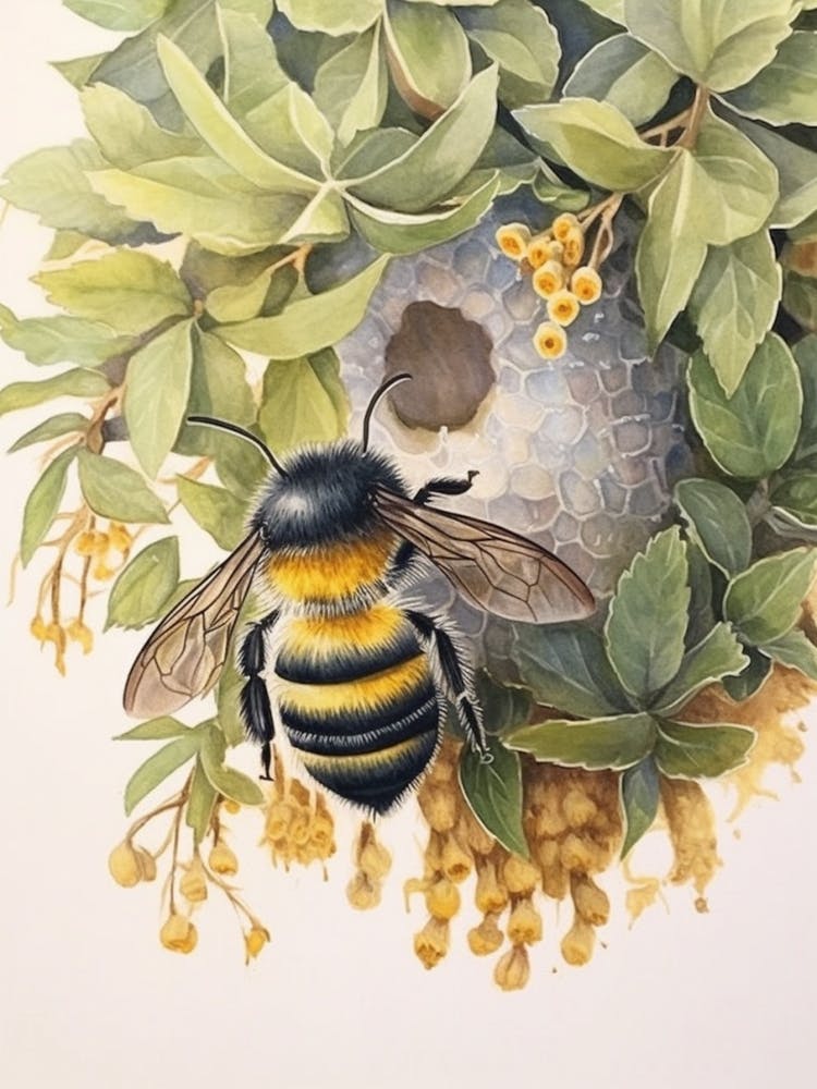Black Tailed Bumble Bee Beehive Watercolour Illustration 4 -