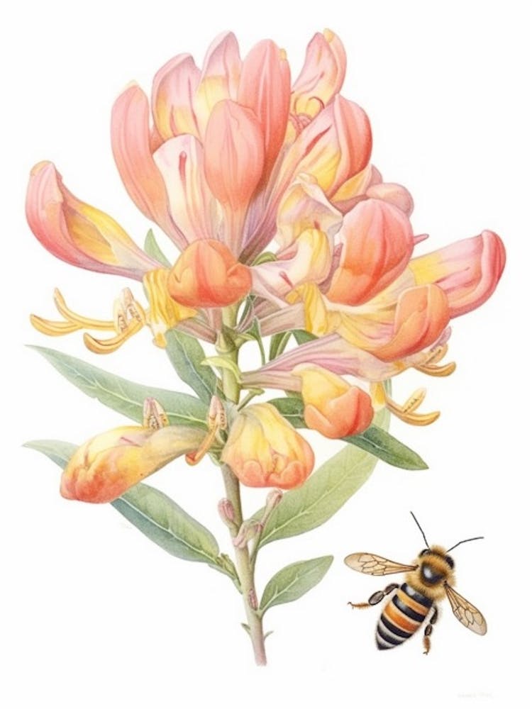 Beehive With Alstromeria Watercolour Illustration 4 -