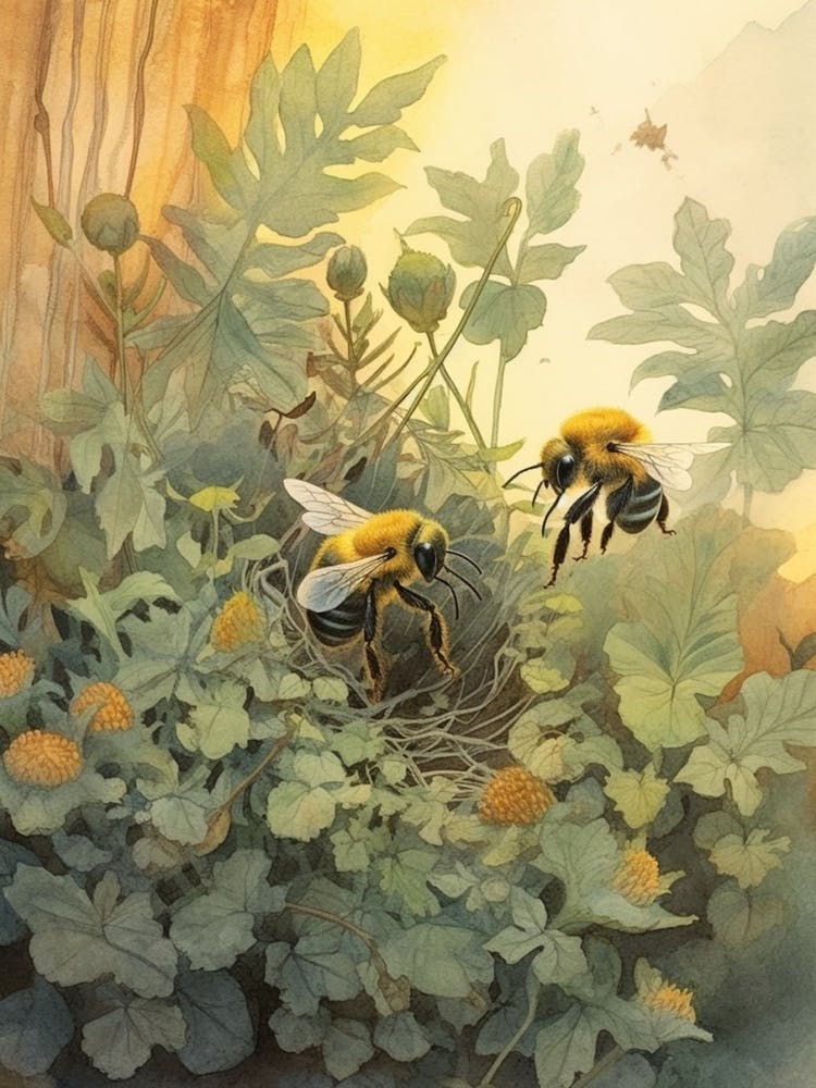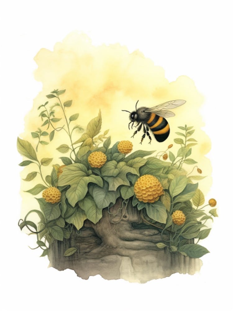 Southern Plains Bumble Bee Beehive Watercolour Illustration 2 -