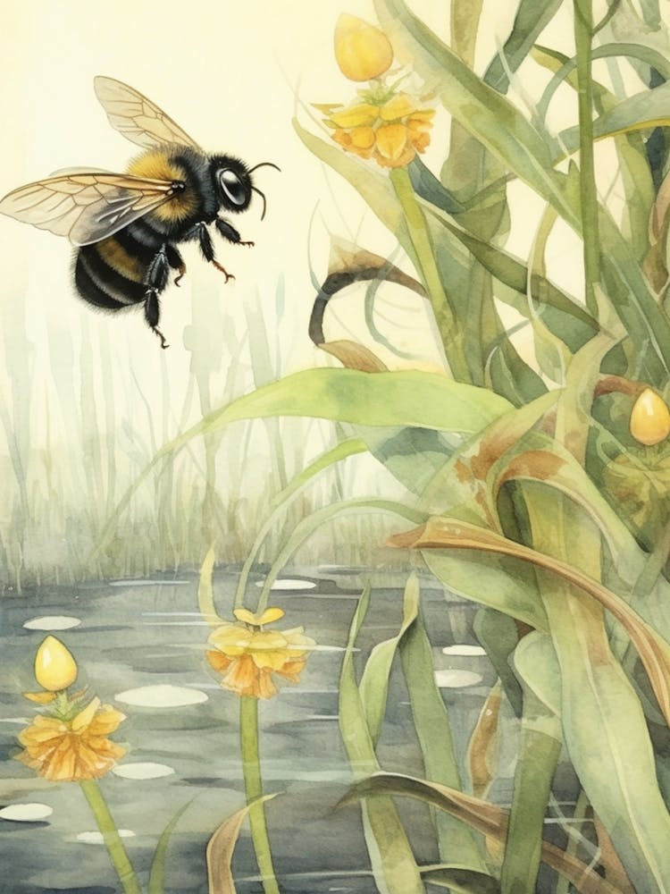 Saltmarsh Carpenter Bee Beehive Watercolour Illustration 3 -