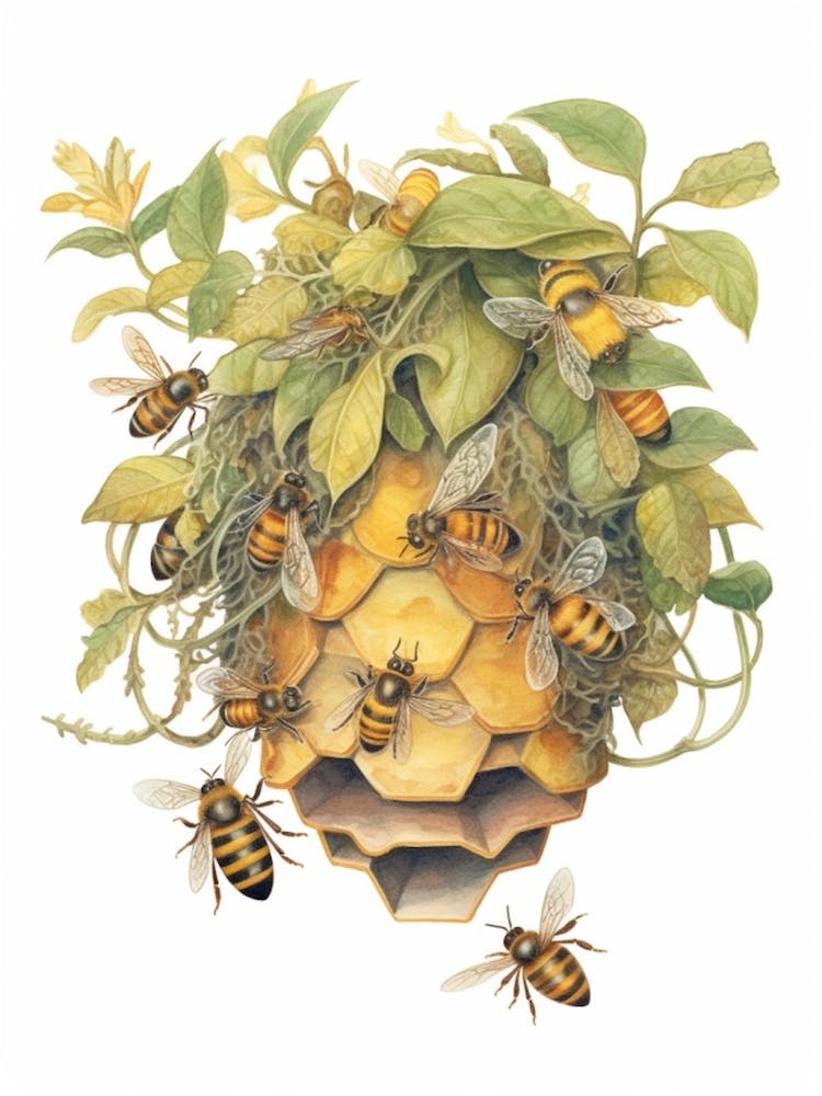 Sweat Bee Beehive Watercolour Illustration 3 -