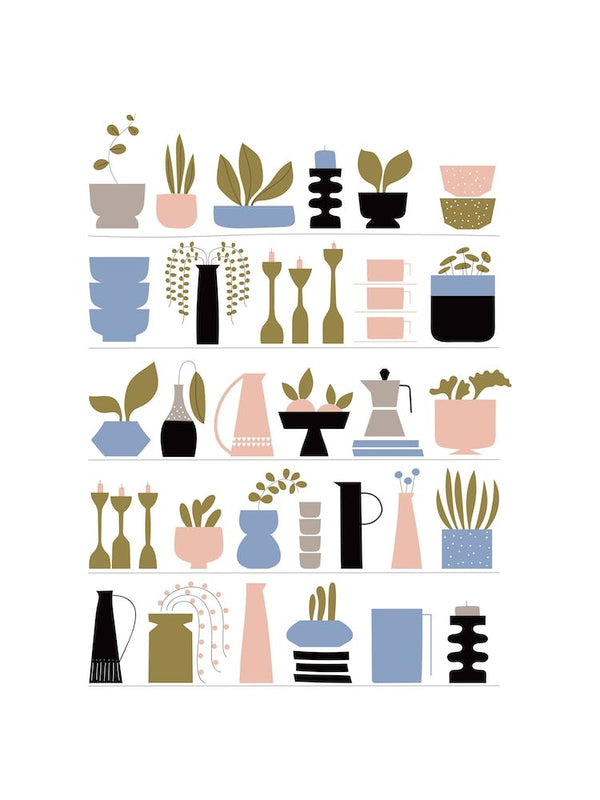Our Lifestyle Illustration Art Prints also offer a delightful escape into nature and imaginative worlds. Picture lush, plant-filled havens, idyllic summer picnics, or vibrant tropical beach towns that evoke blissful getaways. Whether you're drawn to the refreshing embrace of a tropical shower illustration or the serene beauty of a lakeside retreat, these nature art prints and whimsical wall art selections inject a sense of adventure and natural beauty into your living space. We even feature sophisticated 'shelfie' designs for those who appreciate minimalist Scandinavian aesthetics and organized calm.