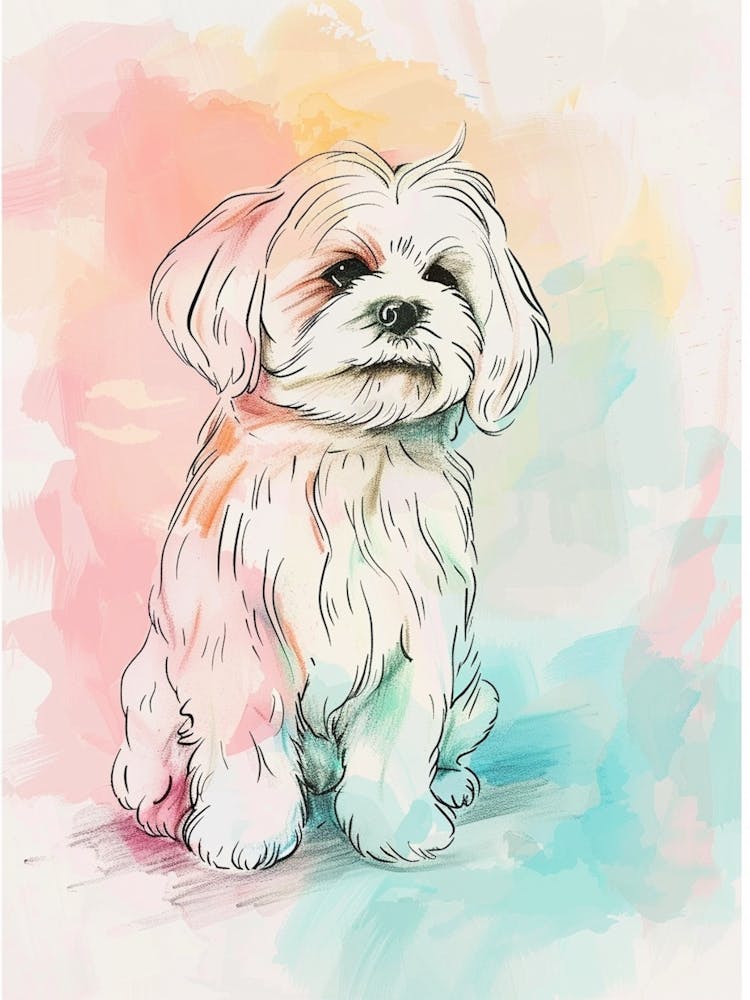 Havanese Dog Pastel Line Watercolour Illustration 2 -