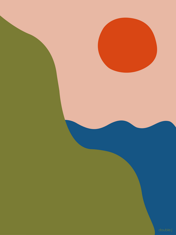 Seaside Day Green And Pink Modern Abstract -