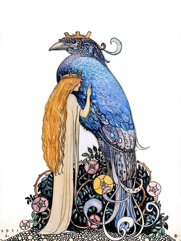 "No Sooner Had He Whistled Than He Heard A Whizzing And A Whirring From All Quarter And Such A Large Flock Of Birds Swept Down That They Blackened All The Field In Which They Settled" by Kay Nielsen - East of the Sun and West of the Moon 1914 - Vintage Vi -