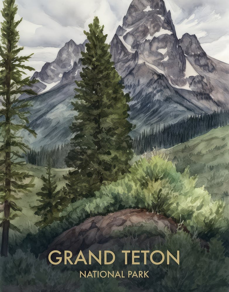 Grand Teton National Park Watercolour Vintage Travel Poster 3 -