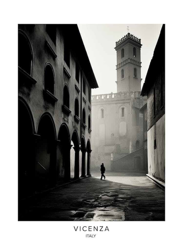 Poster Of Vicenza, Italy, Black And White Analogue Photography 3 -