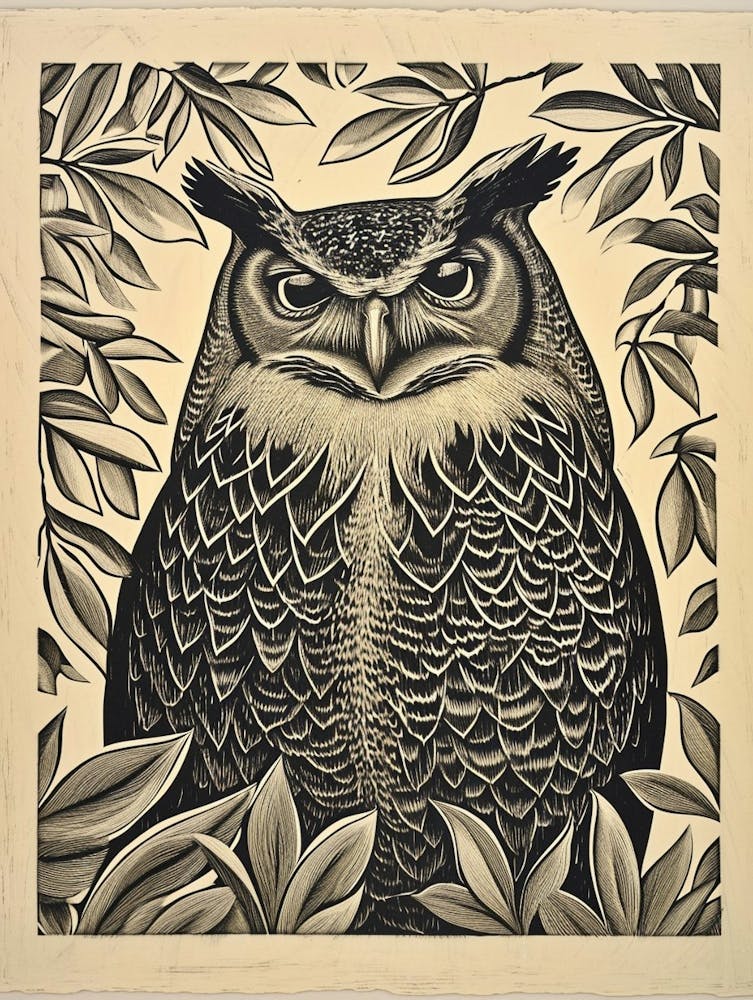 Verreauxs Eagle Owl Linocut Blockprint 2 -