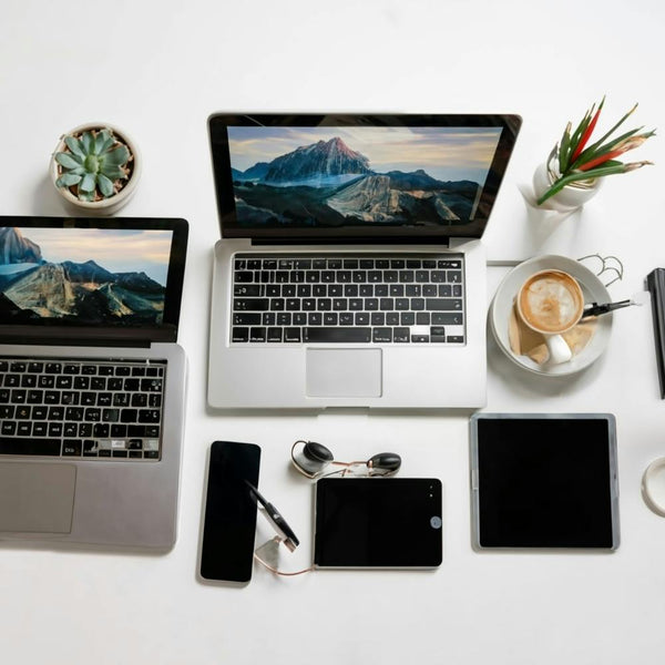 A collection of modern and stylish technology devices, such as laptops, smartphones, and tablets, arranged in a sleek and organized workspace. These images are commonly used in marketing, technology, and business-related projects to convey innovation and -