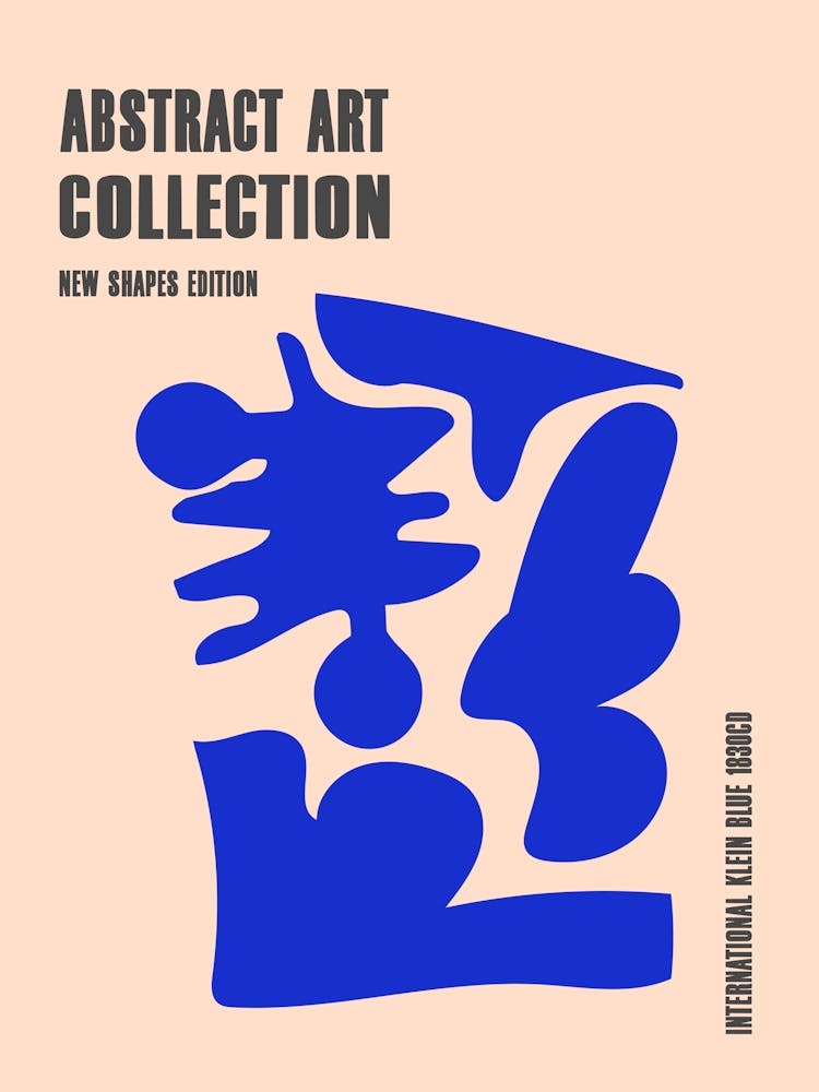 Unregelmäßige, kräftige Formen in intensivem Kleinblau schweben vor einem weichen, hellrosa Hintergrund. Die Komposition ist eine Übung in minimalistischer Eleganz, mit scharfen Kanten und einem auffälligen Farbkontrast. Es weckt ein Gefühl ruhiger Modernität, ein klares grafisches Statement, das sowohl verspielt als auch raffiniert ist.