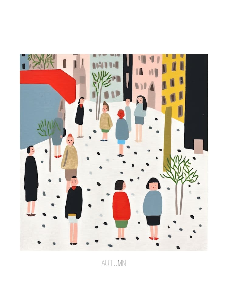 Winter Snow Scene, Tiny People And Illustration 4 -