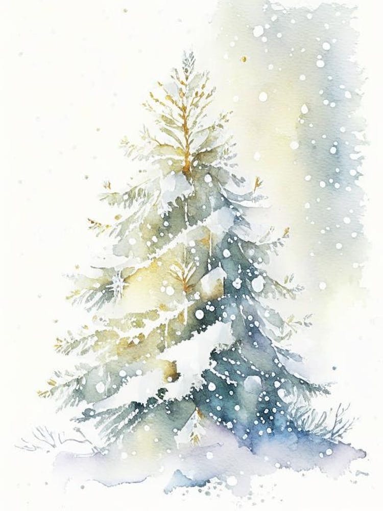 Snowfalkes By Christmas Tree, Snowflakes, Storybook Watercolours 1