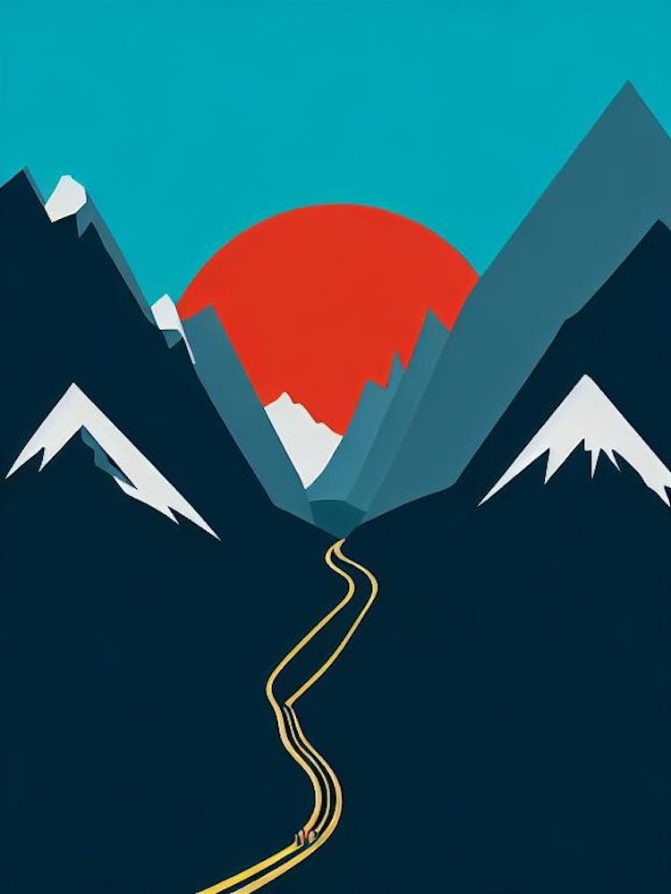 Alpamayo Peru 3 Colourful Mountain Illustration Poster -