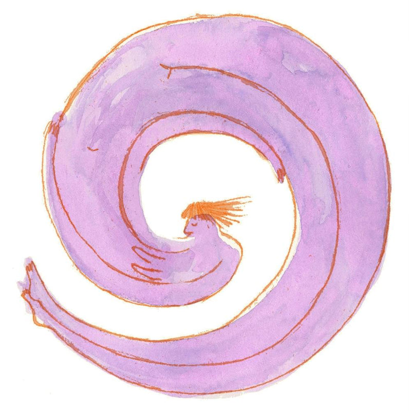 A serene human form gently unfurls into a soft, lavender-hued spiral, cradled within a watercolor's delicate wash. The image evokes a profound sense of introspection and completeness, a visual mantra for self-acceptance and quiet strength. Its simple elegance encourages a moment of calm, inviting deep breaths and gentle reflection.