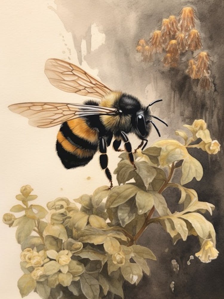 Black And Gold Bumble Bee Beehive Watercolour Illustration 1