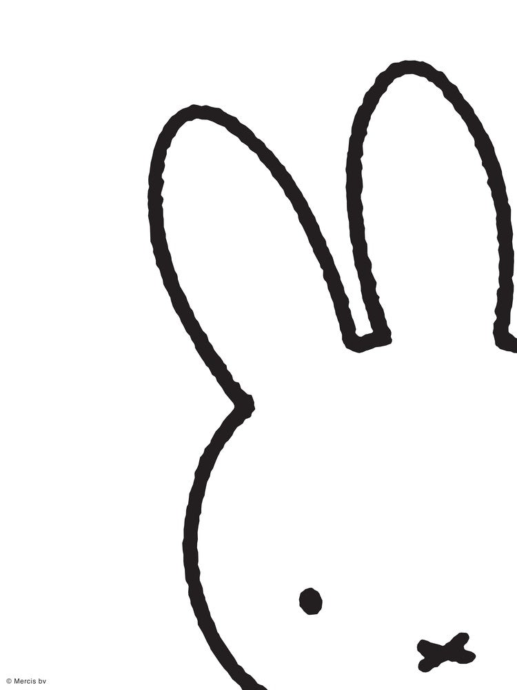 A simple, iconic rabbit peeks into frame with curious eyes and a cross for a mouth, instantly recognizable. The minimalist black outline on a crisp white background conveys a playful, whimsical charm. This piece radiates a timeless, innocent joy, inviting smiles and a touch of nostalgic wonder.