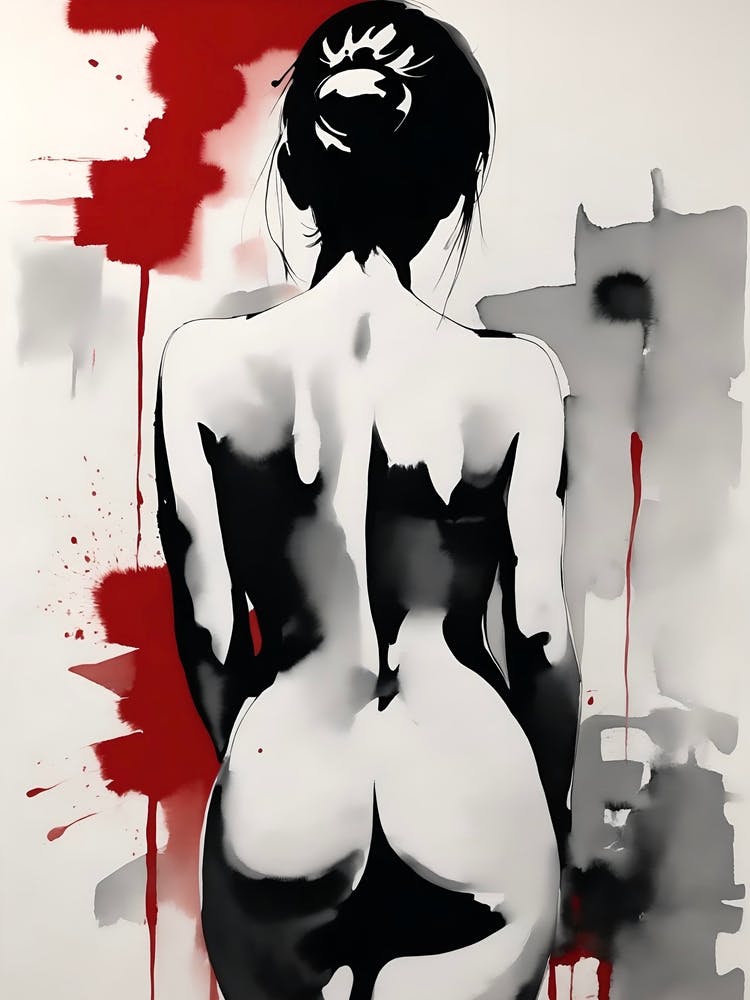 Traditional Japanese Art Style Nude Geisha Girl 3 -