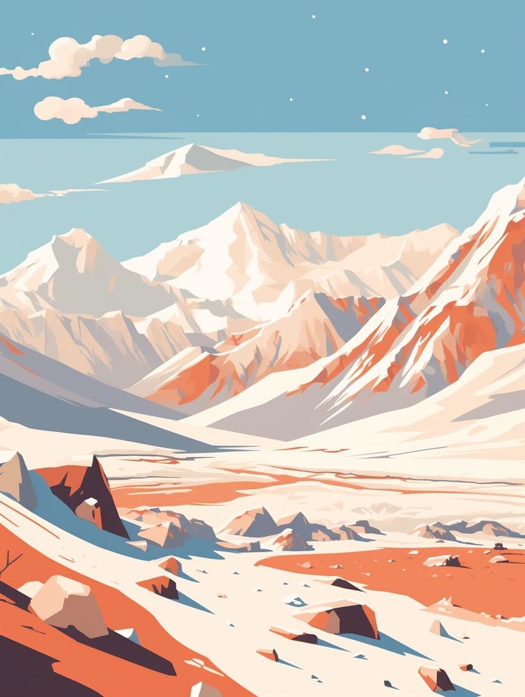Vintage Winter Travel Illustration Pamir Mountains Tajikistan 1 -