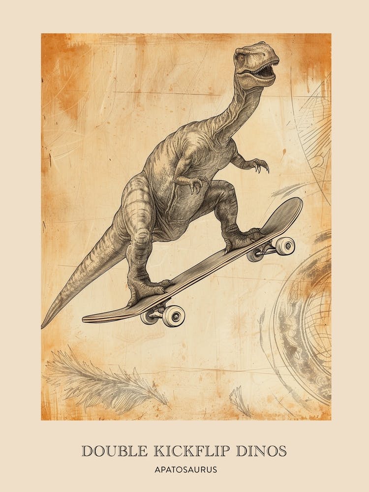 • Vintage Carnotaurus Dinosaur On A Skateboard 2