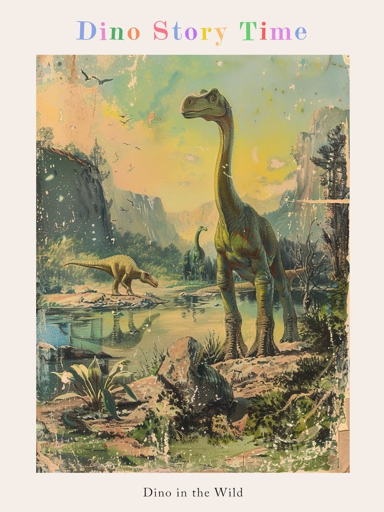 • Dinosaur In Jurassic Landscape Vintage Illustration 2 Poster