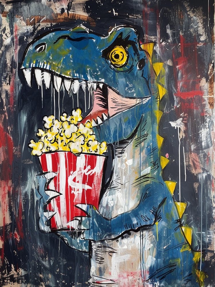 • Dinosaur Shopping With Shopping Bags Abstract Painting 1 Poster