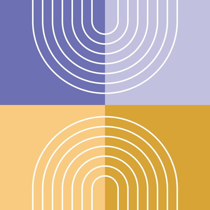 Abstract Rainbow Line and Blocks IV in Mustard Gold Purple Midcentury Modern 1