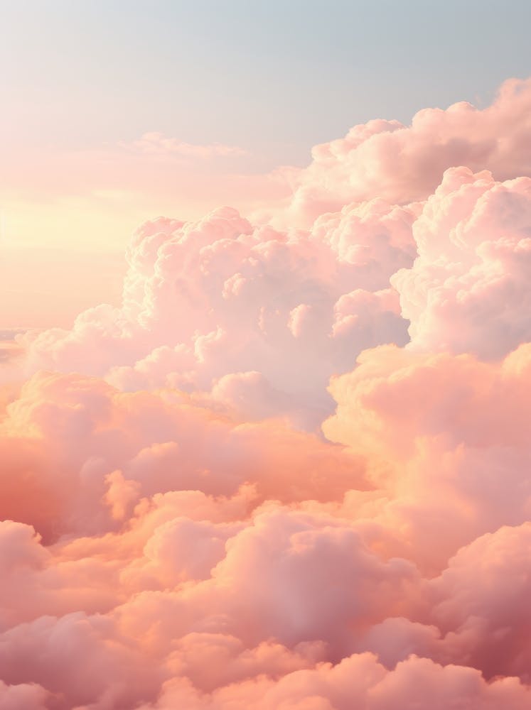 A boundless expanse of sky melts into soft pastels, where billowy clouds blush with shades of rose and peach. This ethereal photograph captures the serene majesty of dawn or dusk, evoking a profound sense of calm and boundless possibility, a gentle invitation to dream.