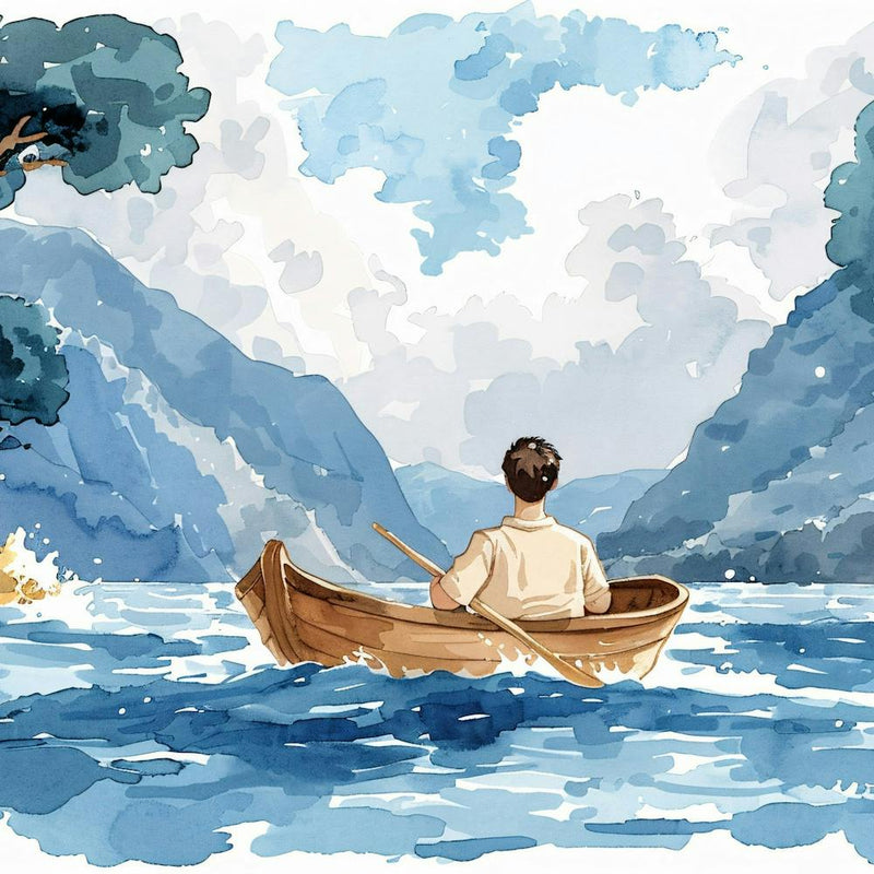 Watercolor Man In A Boat