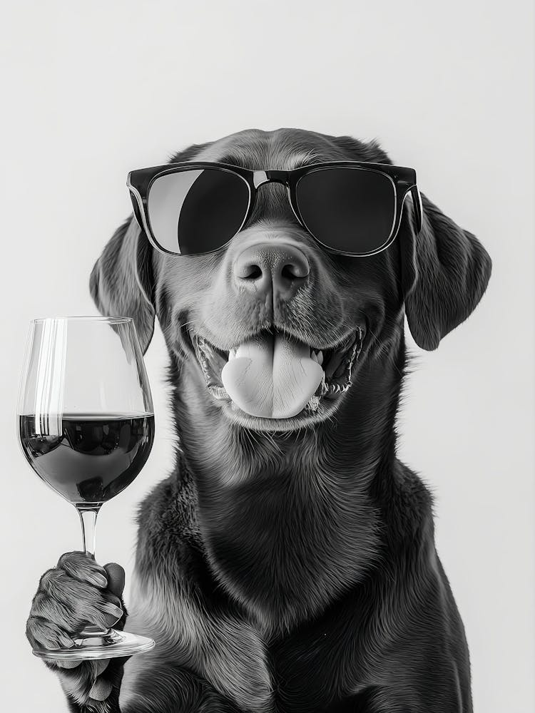 • Chocolate Labrador Drinking Wine Wall Art, Black And White Print, Bar Cart Print, Pet Art, Alcohol Print, Funny Dog Poster, Kitchen Decor