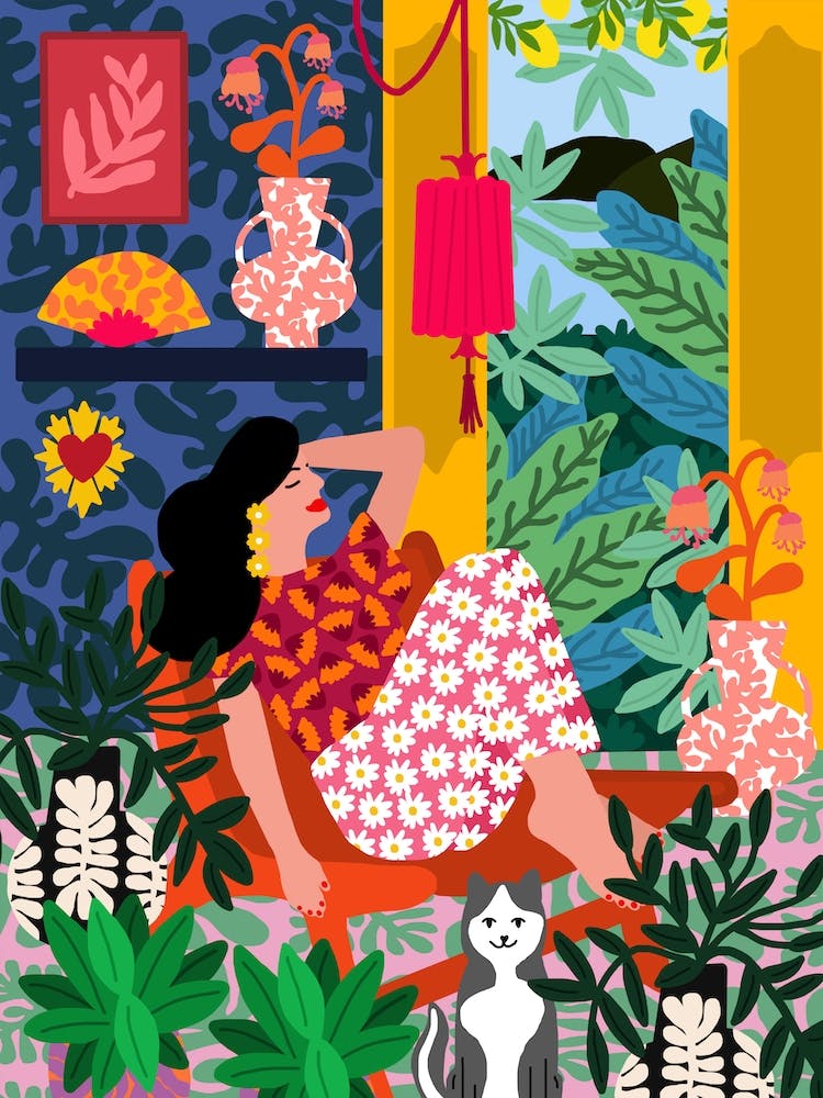 • Queen Of Hearts Playing Card Maximalist Blue Print Lucky You Dopamine Decor