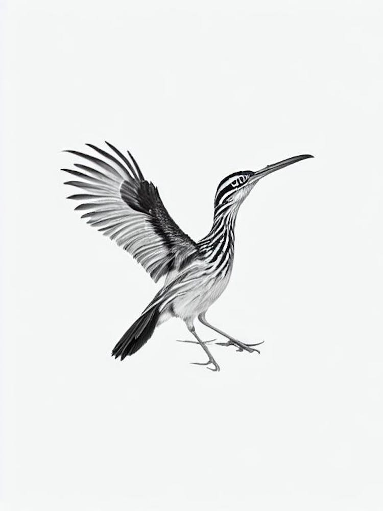 Roadrunner B&W Pencil Drawing 1 Bird -