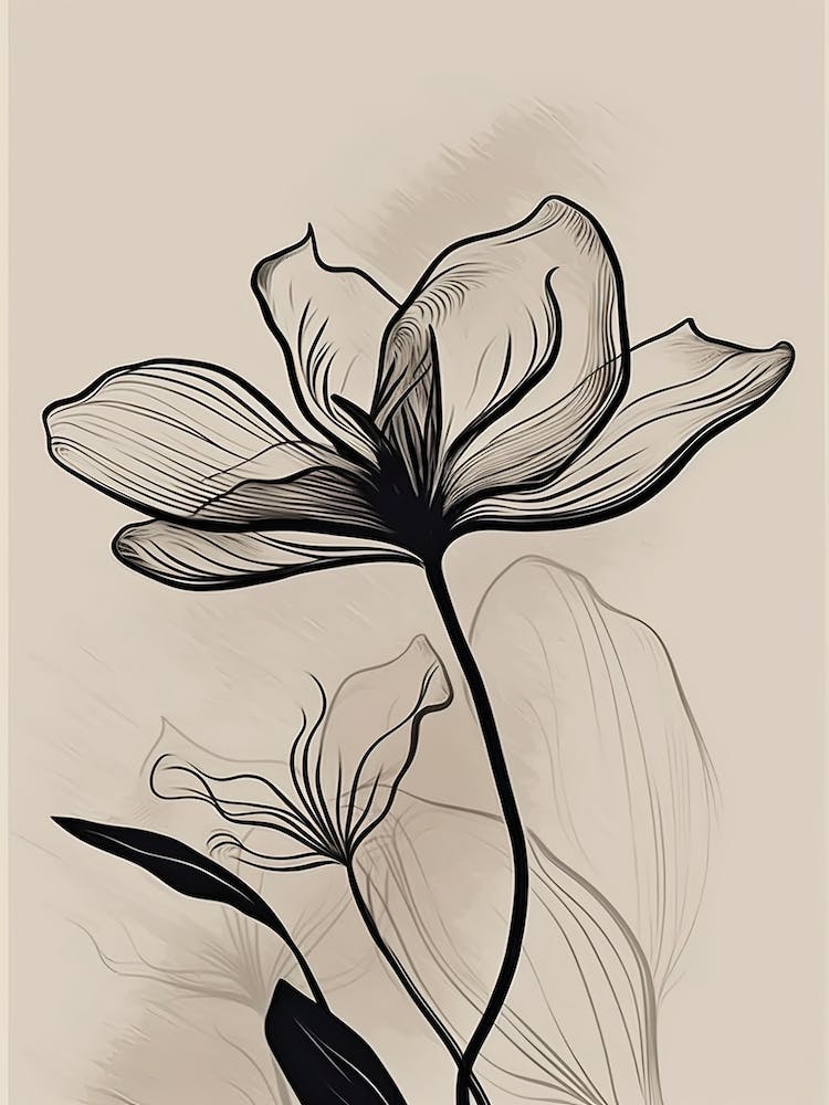 Lilies Line Art Flowers Illustration Neutral 5 -