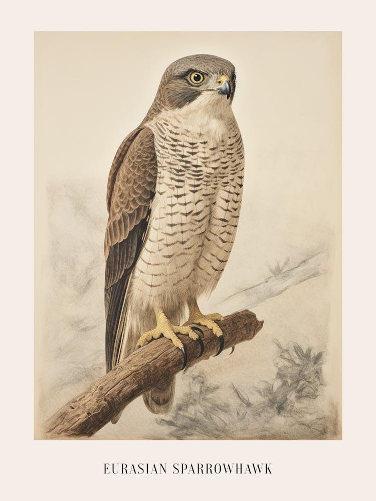 Vintage Bird Drawing Eurasian Sparrowhawk 2 Poster -
