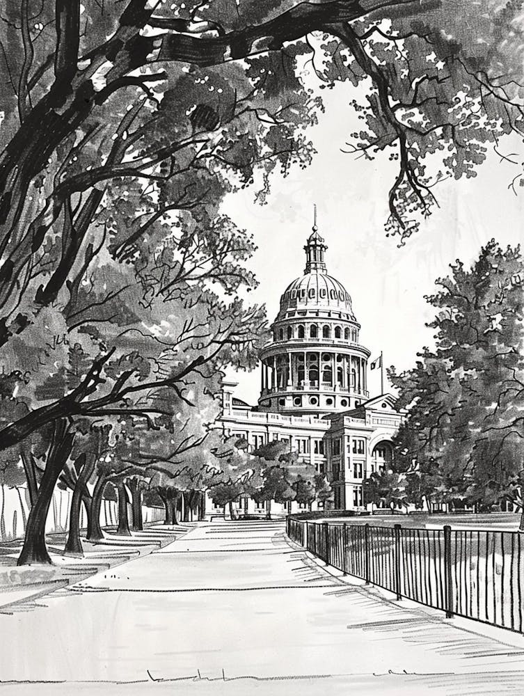 The Texas State Capitol Austin Texas Black And White Drawing 4 -