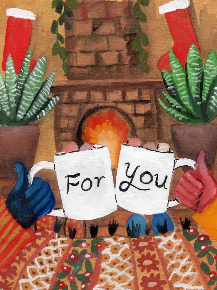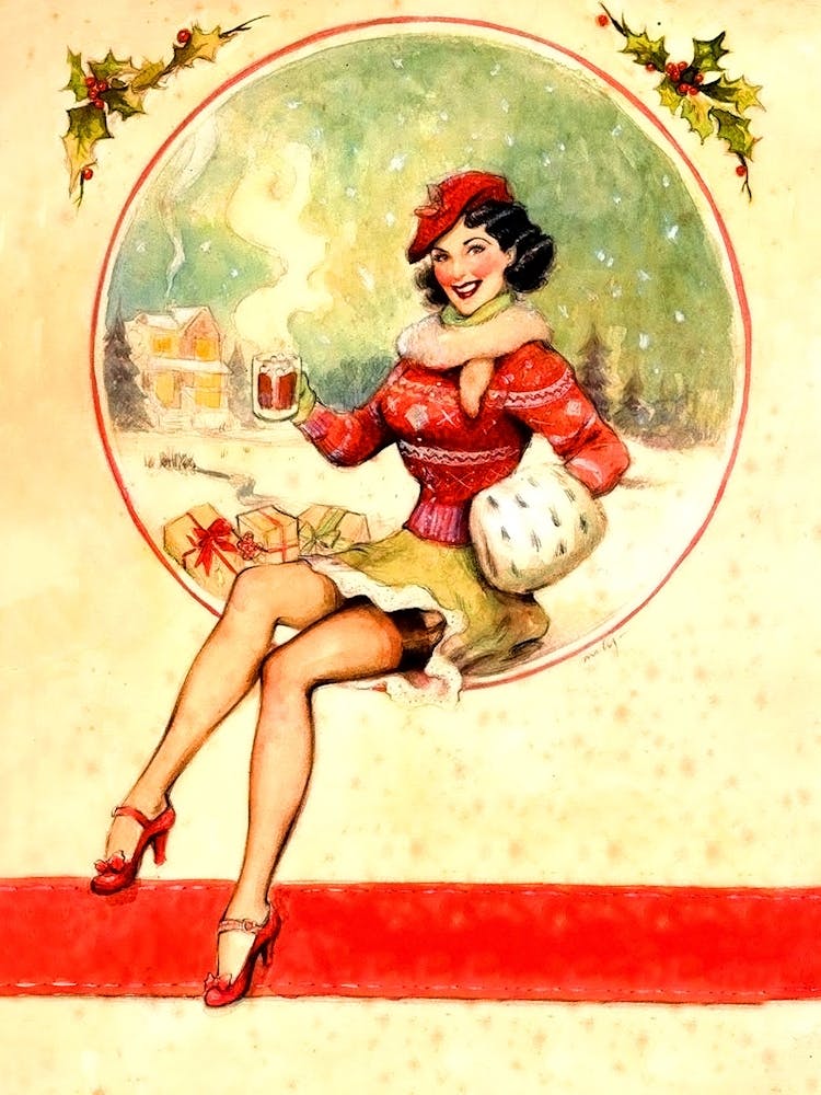 Pinup Girl With Warm Chocolate And Lots Of Presents -