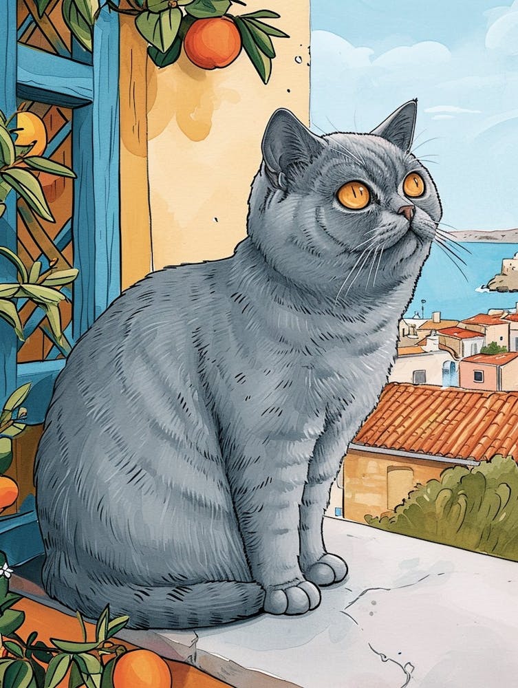 British Shorthair Cat Storybook Illustration 4