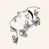 A single, fluid line traces a feminine profile, eyes closed in serene contemplation. Delicate butterflies emerge from her form, their wings intricately rendered, symbolizing transformation and lightness. The minimalist aesthetic, set against a deep forest green, creates a powerful yet peaceful statement, inviting introspection and quiet grace.