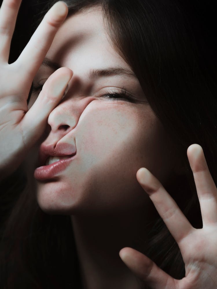 A face is pressed against a barrier, hands splayed, conveying both connection and separation. The dark, intimate lighting amplifies the emotional undercurrent, inviting contemplation on the paradoxes of modern communication. It's a striking visual metaphor for the digital age.
