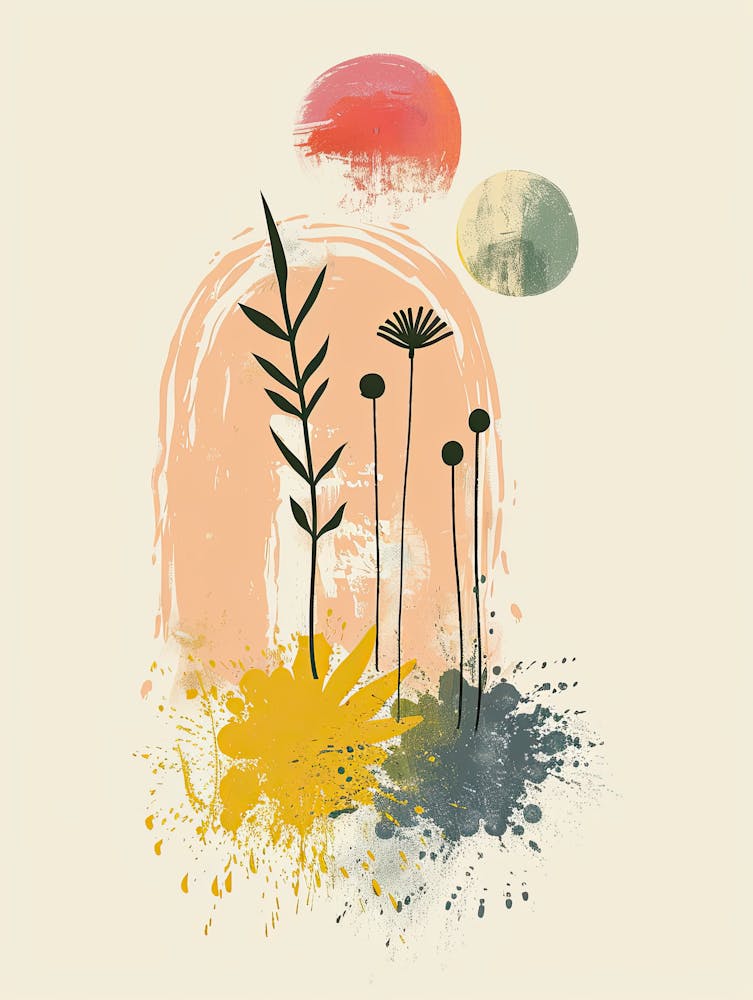 Geometric shapes in warm, retro hues—orange, green, and beige—interlock and overlap, creating a mesmerizing kaleidoscope of harmony. The design distinctly echoes Mid-Century Modern aesthetics, infusing any space with playful sophistication and a timeless, upbeat rhythm. It’s a graphic celebration of balanced form and color.
